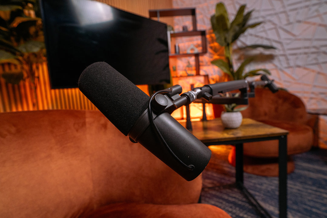 This is the mic. The Shure SM7B is a favorite among podcasters, streamers, and artists for a reason — it delivers that clean, warm, professional sound you hear on all your favorite shows. It cuts out background noise, focuses in on your voice, and makes sure every word you say comes through crystal clear.